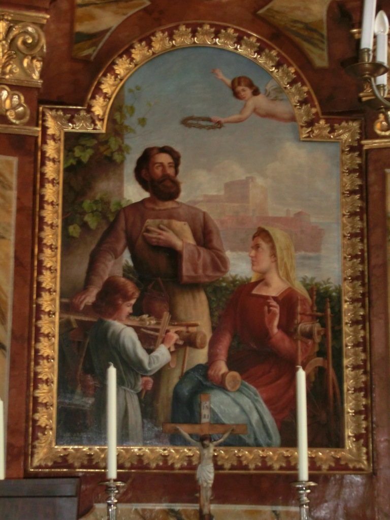 | Bildtitel: | Gemälde "Arbeit" von Alois Raimund Hein - rechter Seitenaltar in der Pfarrkirche Unterach. Als Modell für den rotgelockten Jungen stand der Sohn von Maler Oswald Grill zur Verfügung |