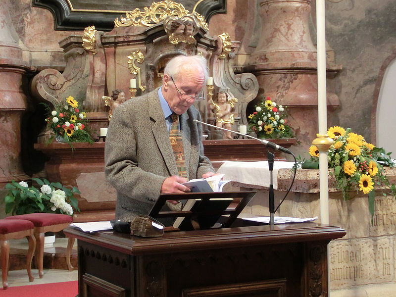 | Bildtitel: | Tag des Denkmals 2013 - Prof. Helmut Pachler erklärt die Grabdenkmale der Pfarrkirche St. Georgen |