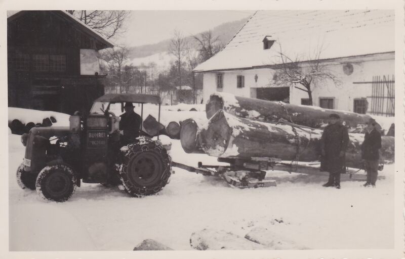 Bildtitel: Holzvergasertraktor des Sägewerks Häupl in Attersee am Attersee