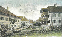 Vor dem Baumgartinger-Schuster 1927 - in den 1950er-60er Jahren war hier der Kindergarten untergebracht