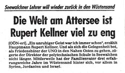 Nach Erreichen der Altersgrenze beendete Major Rupert Kellner am 16. Februar 1992 seine Auslandstätigkeit. Neben der Wiederaufnahme seiner Arbeit an der Schule blieb er dem Bundesheer verbunden. Dort gab er sein Wissen und seine Erfahrungen in vielen Kursen und Schulungen weiter und war dank dieser Erfahrungen bei internationalen Großübungen im Stab dabei. Seine Erfahrung wird auch von Wirtschaftsbetrieben gerne angenommen und in Referaten und Seminaren geschätzt.