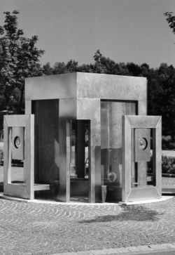 Vier große Rahmen werden von oben mit Wasser versorgt. Das herabrinnende Wasser bildet Wände aus einem Wasserschleier. Vor jedem Rahmen steht eine optische Linse. Blickt der Betrachter durch eine dieser Linsen auf den Wasserschleier, so erhält er den Eindruck, als würde das Wasser von unten nach oben strömen. Man kann das Denkmal mittels eines diagonal verlaufenden Weges auch begehen, wobei bei den Besuchern Unterwasserassoziationen hervorgerufen werden sollen.