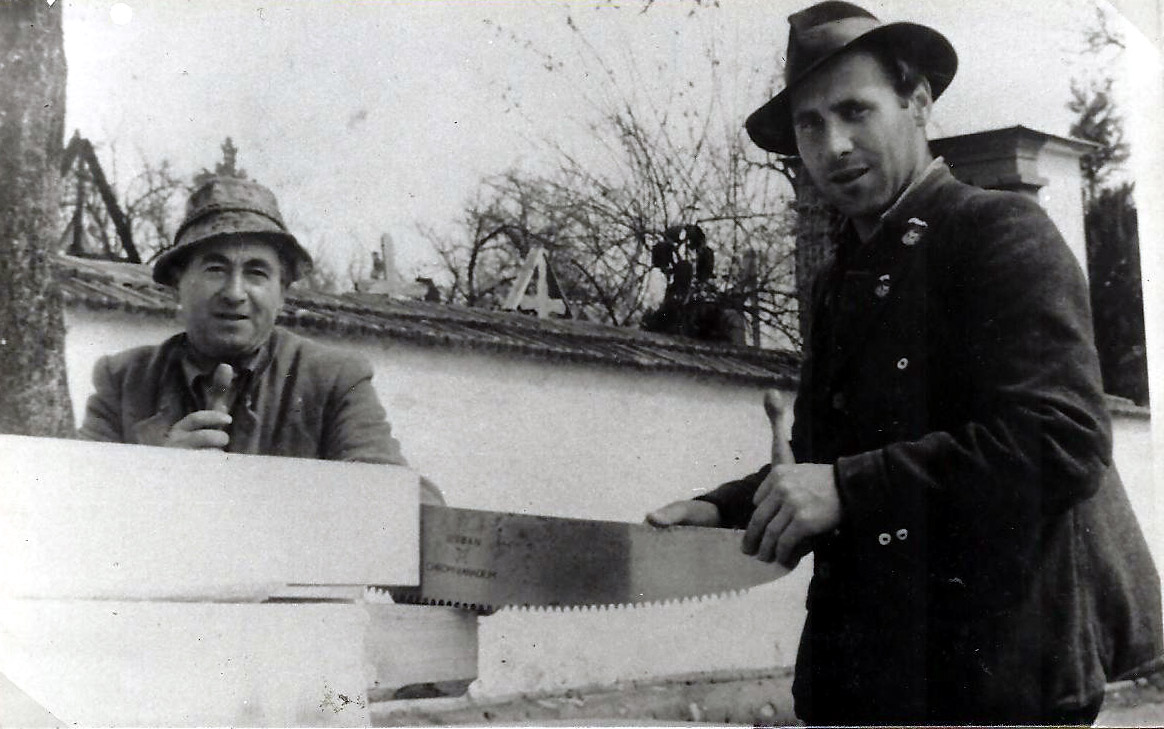 {{Bildbeschreibung|Zimmerleute beim Abbund 1951|Walter Großpointner||}}