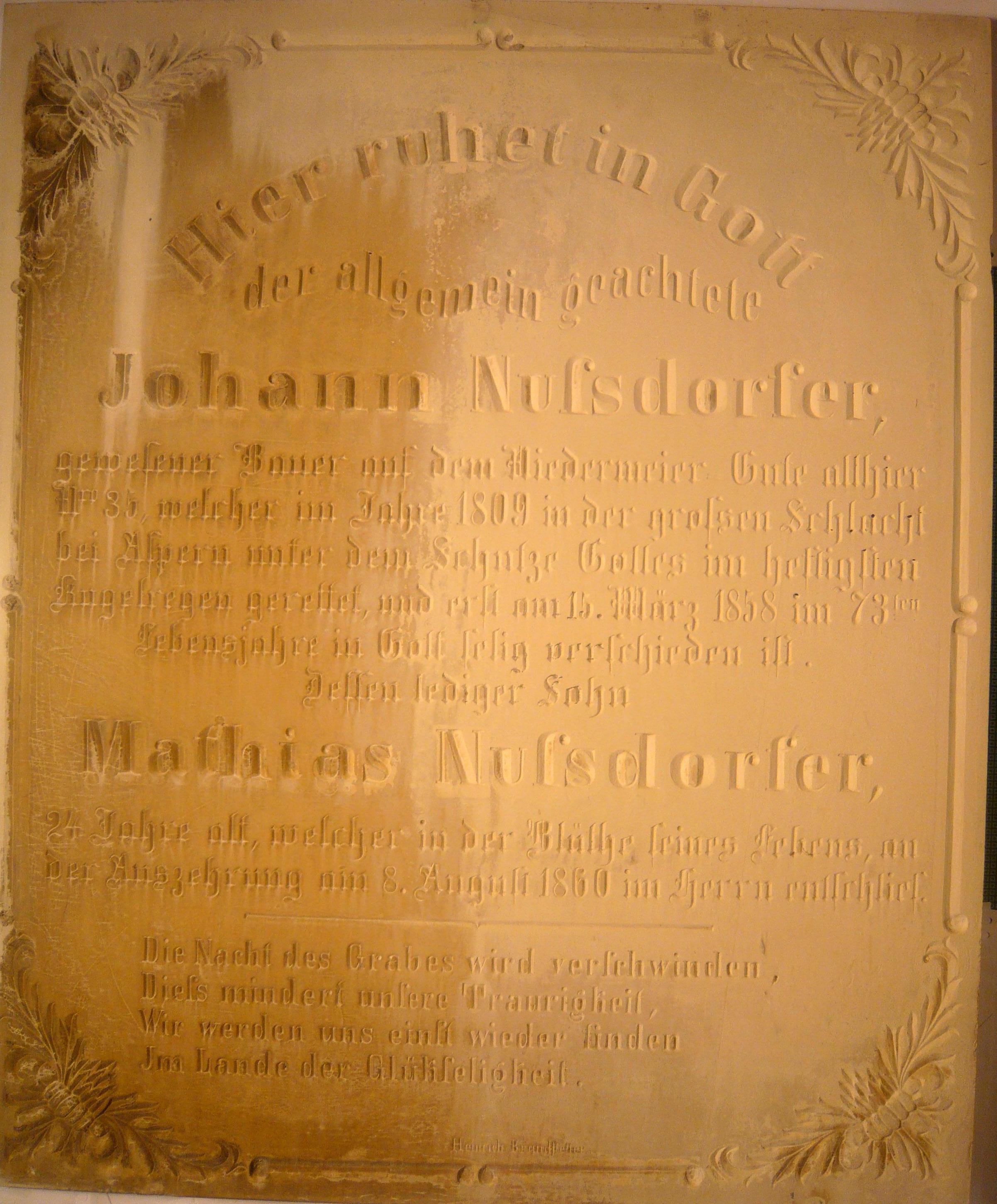 | Bildtitel: | Grabinschrift Johann Nußdorfer |