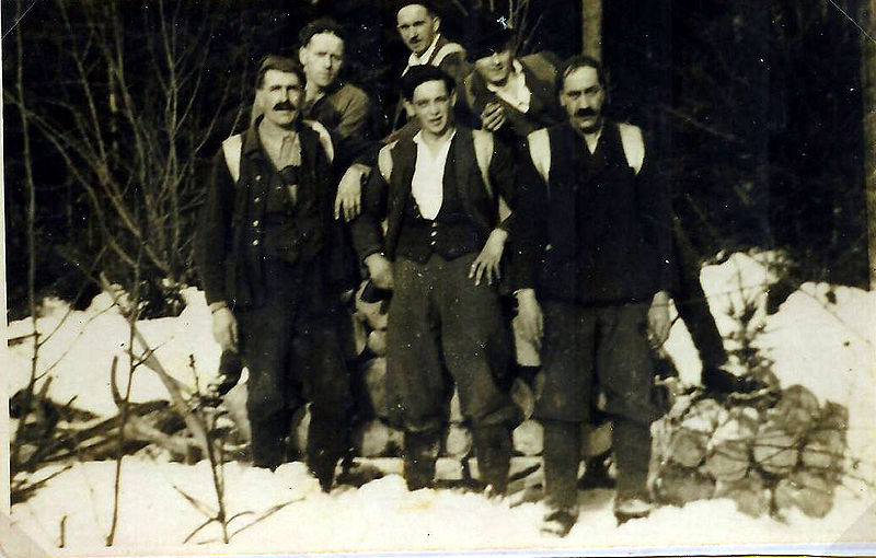 Bildtitel: Holzknechtpartie zum Scheiterziehen 1946