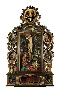 Während der Gekreuzigte hohl gegossen ist, bestehen bei den Begleitfiguren nur Köpfe, Hände und Füße aus Wachs. Für die Kleider wurde wachsgetränkter, feiner Stoff über ein Gerüst aus Werg und Draht drapiert. Der Altar hatte durch oftmaliges Auf- und Abbauen sowie Sonnenbestrahlung bereits ein stark beeinträchtigtes Aussehen, als er 1962/63 umfassend restauriert wurde.