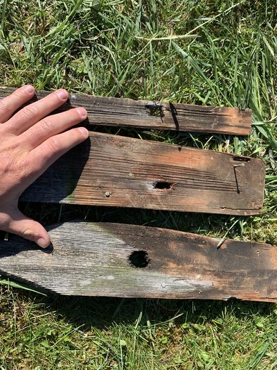 Spechtlöcher an alten Schindeln