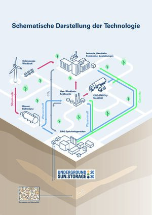Im Projekt „Underground Sun Storage 2030“ (USS 2030) wird eine großvolumige Speicherung von erneuerbarer Energie in Form von Wasserstoff in unterirdischen Gaslagerstätten entwickelt.