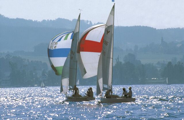 Bildtitel: Yngling-Segler vor dem Wind