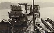 Plätte mit Holzladung und Ruderantrieb um 1900